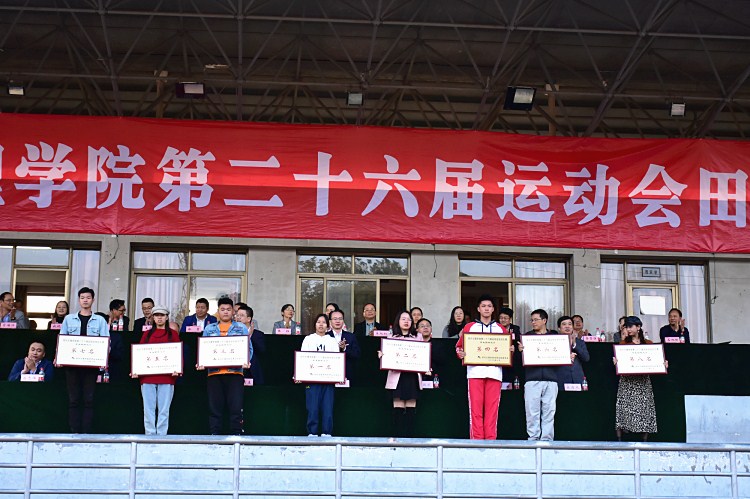 10月30日下午4时,绍兴文理学院第二十六届田径运动会于南山校区落下帷幕。校党委副书记张宏,副校长柳国庆、陈均土,校党委委员、宣传部部长梁瑜,党办校办、党委学工部、研究生处、教务处、校团委和各二级学院相关负责人出席闭幕式。张宏致闭幕词,柳国庆主持闭幕式。经过激烈的角逐,我院代表队取得了团体总分第一的好成绩。其中,在34个比赛项目中,斩获第一名22项,第二名12项,第三名8项。含女子4x400米、4x100米混合接力、4x400米混合接力、女子跳高、男子跳远、男子三级跳远、女子铅球、男子铁饼等项目共22枚金牌。