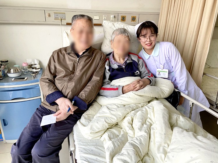 因为个子小的缘故,爷爷奶奶们总喜欢把黄慧强看作小朋友、小孙女,还亲切的唤她:“我们家小朋友”,她也有事没事就喜欢跟老人们聊天:“吃饭了吗,今天吃的什么呀?”还会跟他们撒娇:“我还没下班,现在好饿呀。”她像只小蜜蜂一样忙个不停,快乐也感染到身边其他人。病房里有一位奶奶八十多了,四月份的时候查出癌症,日夜守护在病床边的她的女儿,不曾想也被检查出身体问题,“我能感受到阿姨的内心很痛苦,天天都很忧愁。”黄慧强格外关心着这位阿姨的身体和精神状况,耐心听她倾诉,平常不见面的时候也会在微信上和她拉拉家常,看见今天天气好,便嘱咐她带着奶奶出去晒晒太阳。在她的陪伴下,那位家属一天天乐观起来,她在跟黄慧强聊天时忍不住说:“小强,你是一个特别有亲情感的孩子,很感谢你这一年送给我的温暖,想到你我就是开心的。”