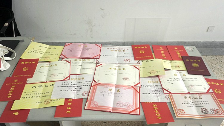 陈庚大学三年收获的荣誉证书