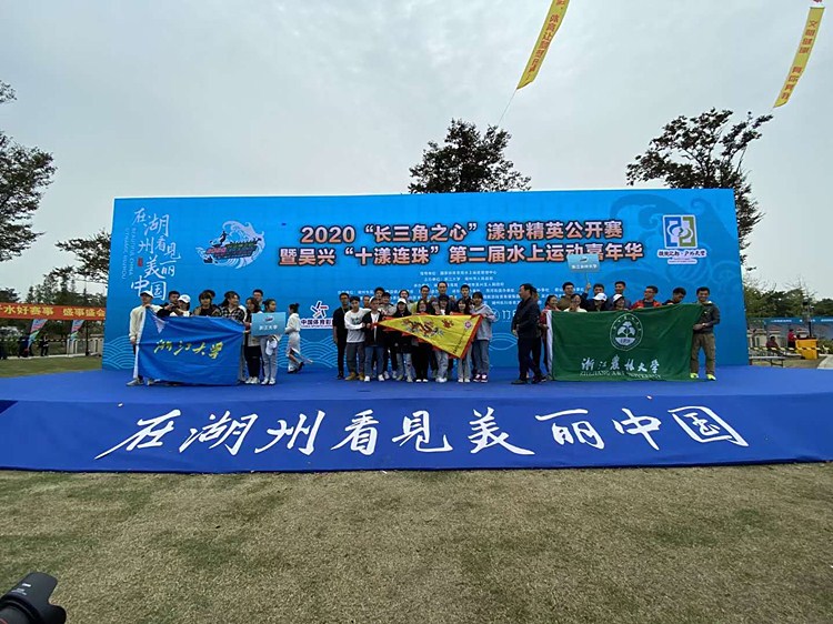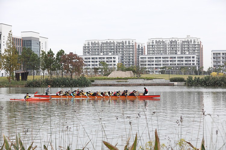 我院龙舟队(图中)在2020“长三角之心”漾舟精英公开赛上荣获名校组200米直道、四人龙板竞速赛两项团体冠军