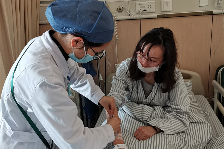 “怎么是实习生来给我打针啊,医生啊,你来帮我打一下,我不要实习生给我打。”一位产后病人躺在病床上喊道。产后需注射缩宫素以避免子宫收缩不良而出现的产后出血。缩宫素的注射方式为臀部注射,注射后子宫收缩会导致病人产生一定痛感,加之病人对郦雨舟的专业技术半信半疑,便出现了如此情景。在这两难的境地下,带教老师站了出来,对病人进行安抚:“放轻松,我们这位小姑娘扎针很准的,她的能力我们医生都很肯定,你要相信她的专业技术。”这一句话像是搭建了郦雨舟和病人之间的信任之桥,不一会儿功夫,还没等病人反应过来,郦雨舟已出色地打好了这一针。