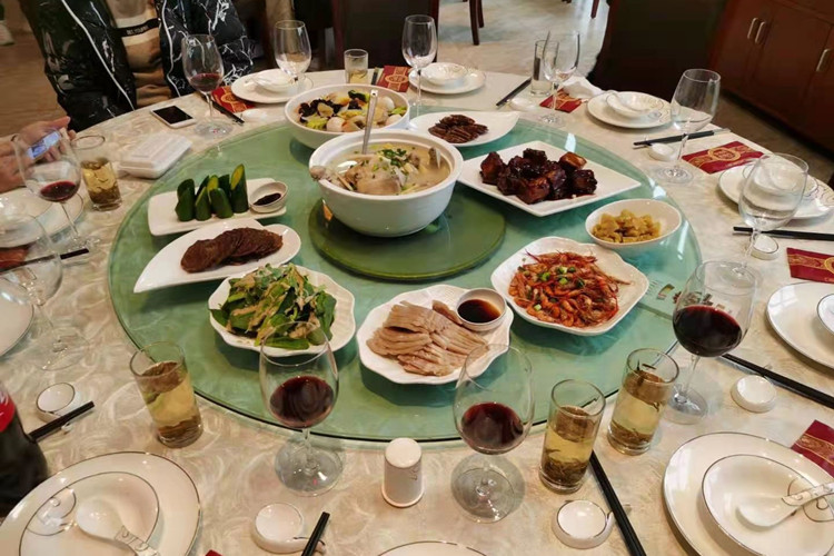 绍三鲜、安昌腊肠、红焖仔排、葱油扇贝、五香牛肉和酸菜鱼.......牛年新春佳节到来之际,农历腊月二十九中午,学院北区兴越楼二楼教工餐厅迎来了一批特殊的客人,由学院院长沈红卫、副院长李黎和相关部门教职工及16位留校学生组成的“临时大家庭”欢聚一堂,共享年夜饭,一起品尝舌尖上的绍兴美食和“家”的味道。