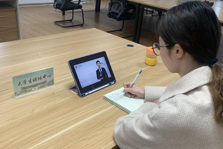 “作为校园新闻宣传报道的主力军,我们要持续加强校园媒体深度融合、互动赋能,增强团队紧密联动,有效合作,在报道形式上创新优化,脚踏实地,传播校园好声音、正能量。迎着建党百年的春风,奋力奔跑再出发!”大学生媒体中心主席、汉语言1801班钟佳苗同学表示。大学生媒体中心副主席、汉语言1803陈辰同学认为,作为一名学生记者,应该更广泛地学习,理清思路、找准方向,跳出自己的圈子,更加客观地看待两会中涉及的包括经济、社会、民生等各方面问题,与时俱进,不断提升自己。