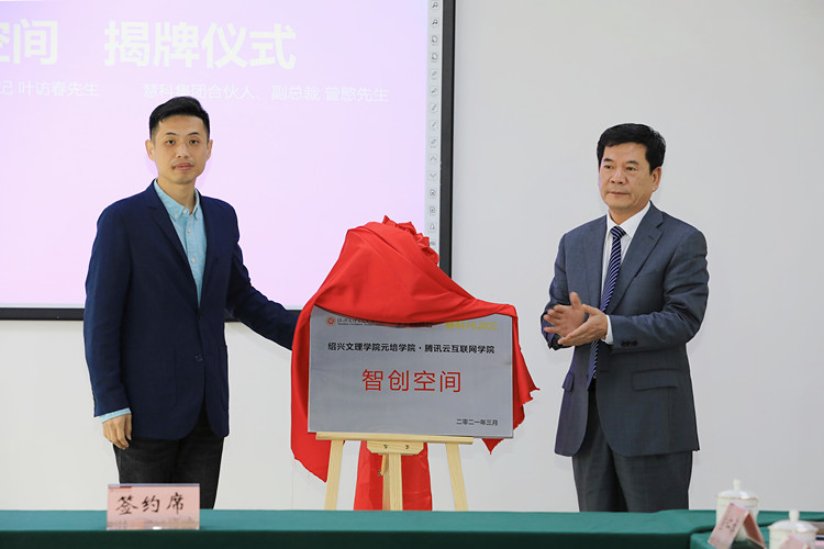 学院腾讯云互联网学院智创空间启用暨中国教育创新校企联盟绍兴分会成立揭牌仪式现场
