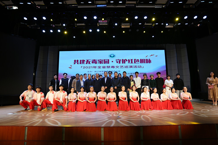 4月14日下午,由浙江省禁毒办主办、绍兴市禁毒办和我院共同承办的“健康人生 无毒家园”2021年全省禁毒文艺巡演活动走进绍兴,并在我院上演了一场精彩纷呈的禁毒专题宣传演出。市委政法委办公会议成员、二级调研员曹银翔、市禁毒委副主任、市公安局副局长项万林、市禁毒委副主任、市司法局二级调研员周朔东、市总工会副主席何贝、学院党委书记叶访春、党委副书记石旭明、市禁毒支队支队长徐华良、越城区公安分局副局长杨尧康出席活动,各分院学生代表300余人参加活动。