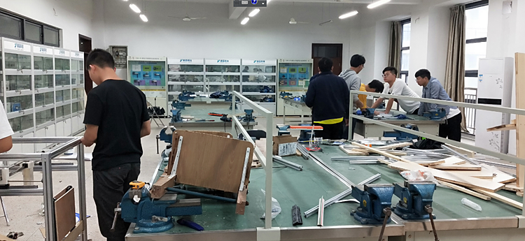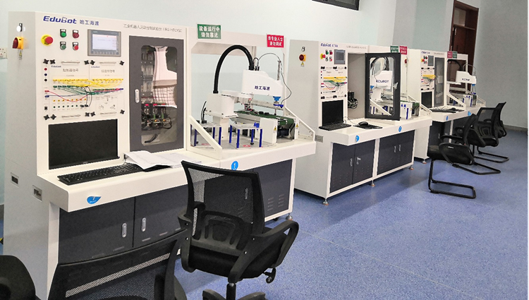 目前机械类实验室共有20余个,能够满足机械类各专业的基本教学、实践及实训。主要有PLC技术及应用实验室、工控实验室、机电一体化综合实验室、先进制造实验室、模具实验室、机电产品测量实验室、模拟电子技术实验室、数字电路实验室、智能仪器实验室、自动控制实验室、电机拖动及电工电子实验室、创客实验室等,2018年投资80余万新建了工业机器人实验室,为适应制造业的智能控制, 2020年建立了DSP电机控制实验室,并投资将近500万新建了工业机器人实训中心,该中心包括:工业机器人实训室、工业机器人运动控制实训室、工业机器人拆装维护工作站、工业机器人搬运码垛工作站及工业机器人焊接工作站等。