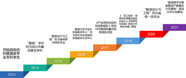 l 《服装设计与工程》专业是浙江省新兴特色建设专业、浙江省本科一流专业建设点,《服装学科》为绍兴市重点学科、服装数字化智能智造为绍兴市产教融合示范基地