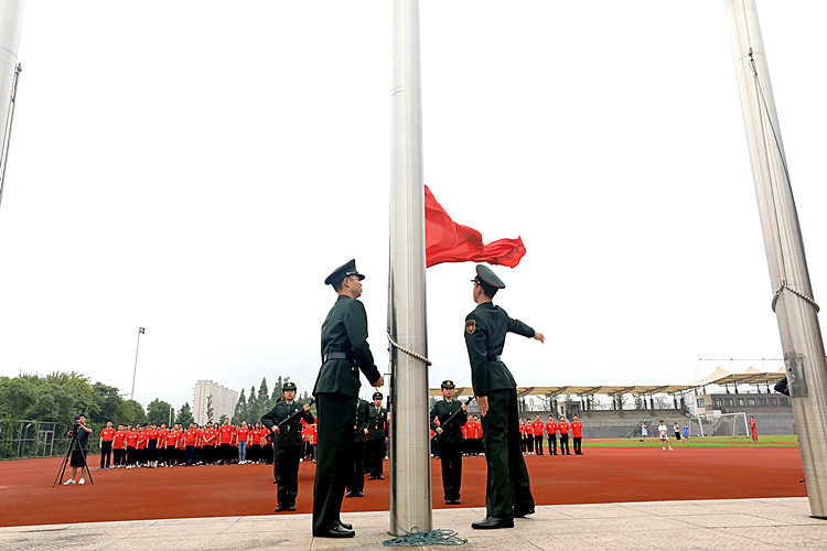 早上7点,在北区田径场,一场庄严的升国旗仪式在这里如期举行。学院党委书记叶访春宣布升国旗仪式正式开始,党委副书记石旭明主持仪式。护旗手们列队整齐,迈着铿锵有力的步伐护送国旗走向旗台。伴随着雄壮的国歌声,鲜艳的五星红旗冉冉升起,迎风飘扬,开启崭新又特殊的一天。全体人员肃立、行注目礼、高唱中华人民共和国国歌。