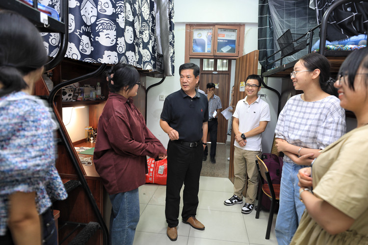 9月7-8日是学院2021级新生开学报到的日子。连日来,叶访春、沈红卫等学院领导先后赴迎新工作现场、校外迎新接站服务点、新生寝室看望2021级新生,慰问迎新工作人员和学生志愿者。深切的慰问和言语的关怀,为奋战在各个岗位上的工作人员和新生们送来了清凉。