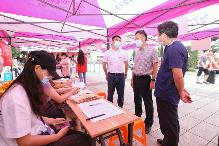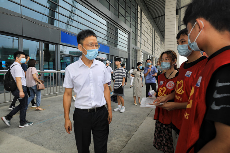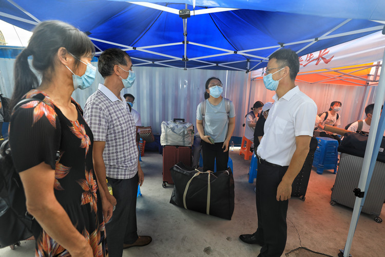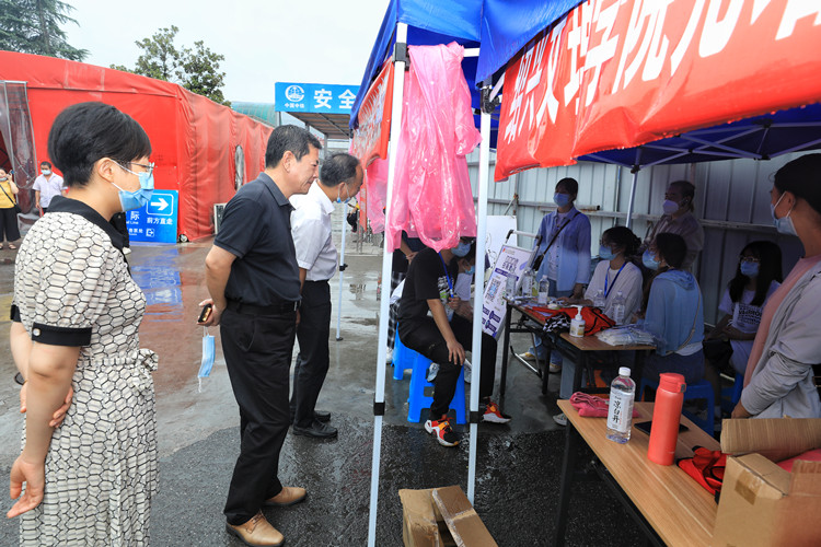 9月7日上午,在西大门和迎新工作现场,院领导们认真察看了进校疫情防控部署落实情况、医疗服务点、家长饮水区、校内迎新接待点、绿色通道办理处等地,与迎新工作人员和志愿者亲切交谈,听取迎新工作情况汇报,详细了解新生报到情况和迎新工作进度,向坚守在迎新工作一线的各分院院长、书记、辅导员、班主任、班助、学生志愿者等表示感谢,对学院开学疫情防控工作和迎新工作给予肯定。