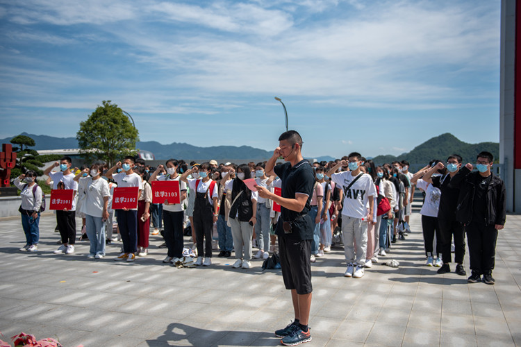 “勤奋学习,进德修业;志存高远,开拓创新;弘扬革命精神,传承红色基因;挥法律之利剑,持正义之天平;立志为社会主义法治事业奋斗终身!”面对梁柏台先生雕像,全体学生激昂宣誓,立志将传承和弘扬梁柏台法治精神,成为新时代中国特色社会主义法治人才。
