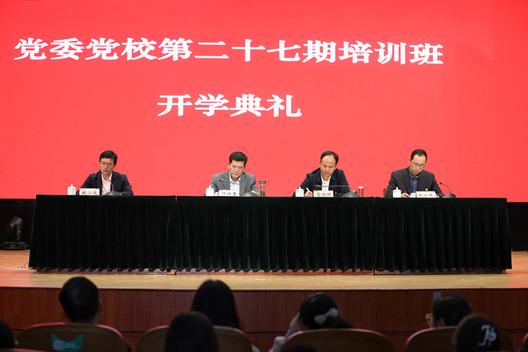 10月20日晚,学院党委党校第二十七期培训班开学典礼在国际文化交流中心报告厅举行。学院党委书记、党校校长叶访春,党委副书记、党校副校长石旭明出席开学典礼。党校校务委员,党校各班主任、二十六期优秀学员代表及二十七期预备党员培训班学员参加典礼。