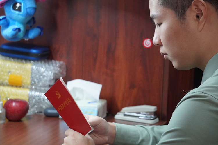 不同于书本上枯燥的理论知识,翁俊峰在军营一点点学习领会中国共产党成立、强大、复兴的全过程,深刻感受无数党员和军人抛头颅洒热血的奋斗历程,在心底也默默树立了想要入党的决心,他坚定地说:“在军营里,我才真正意识到党员到底是什么。党员在平时也是普通人,但是在国家、组织、人民需要的时候,党员要第一个站出来、顶上去。”
