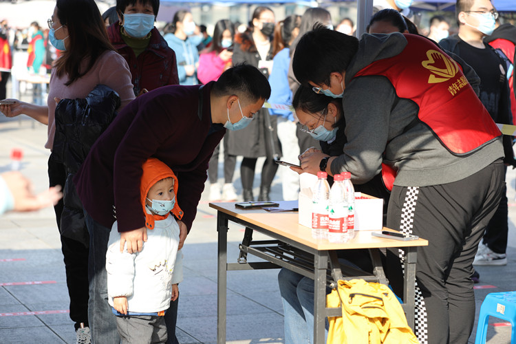 12月13日、16日,学院启动两轮全员核酸检测工作。当天中午,百余名学生志愿者组成的队伍立刻集结起来,参与防疫工作培训。如何使用测温仪?如何进行信息登记?如何注册相关APP……志愿者们专注地倾听着每一条注意事项,并将要点牢记在心。“同学,请间隔一米排队等待。”“请出示健康码!”16条采样通道上,测温、登记、放行,测温、登记、放行有序进行,红色的身影来来回回走动着,从未离开。同样的动作重复了成百上千次,繁复的工作持续近10个小时。
