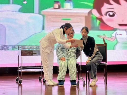 护理1811吴丽晴(右一)在嘉兴市第二人民医院护理部六步沟通法情景模拟比赛中荣获二等奖、内科第一名