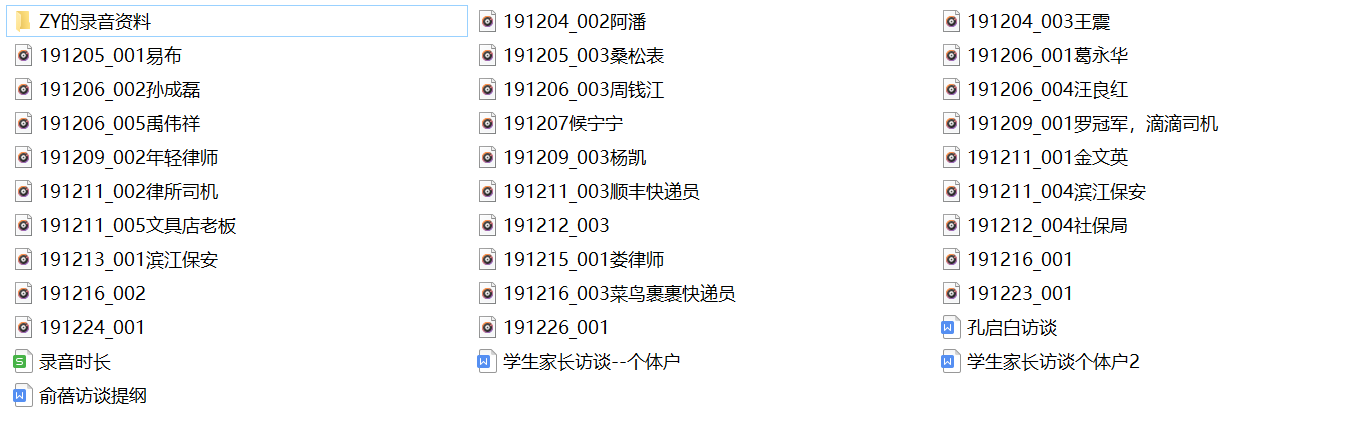 “比起调查问卷,访谈更让我觉得困难。”閤晓林笑着说起那段难忘的经历,“随身带着一只录音笔,在各种场合奔走了一个多月。”人群覆盖面要广,问题要有针对性,调查情况要全面……这些对“访谈新手”閤晓林来说绝非易事。“保洁阿姨常常对问题感到奇怪,被快递小哥误会是常有的事,身边认识的人都被我问了个遍。”閤晓林不由地笑起来。从校园内的快递员、保洁员、同事,到校园外的餐饮服务员、个体经营户、国企员工,她“处处踩点、逢人就问”,看着文件夹里四十多份采访提纲,六七百分钟的音频资料,访谈过程从“懵懂生涩”到后来“流畅顺利”,两个月努力的成果在她看来非常值得。