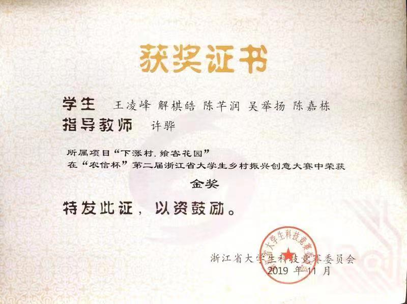 历时七十余天,从前期不被村民理解,到大家的主动配合,帮助寻找植被种植、搬运石块,陈芊润和“原郷客”成员们付出的努力终于有了收获。下涨村的面貌不再拘泥于一贯的城镇化风貌,焕发出了更为浓郁的乡土本色,保留了原汁原味的乡土气息,游客数量明显提升。而七十多天的辛苦付出,也让陈芊润和“原郷客”团队揽回了“农信杯”浙江省大学生乡村振兴创意大赛金奖,学院暑期社会实践团队一等奖的奖杯,陈芊润则获得了绍兴市大中学生暑期社会实践先进个人。