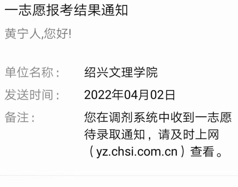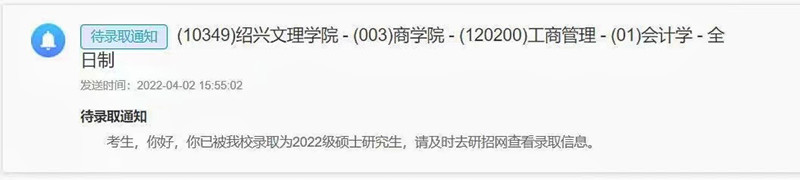 功夫不负有心人,2022年2月21日下午,当看到自己取得409分的优异成绩,黄宁人兴奋不已,“一切的努力都是值得的,从早上十点开始悬着的心终于放下,虽然英语和政治在我意料之中,但两门专业课的成绩的确既惊喜又意外。”