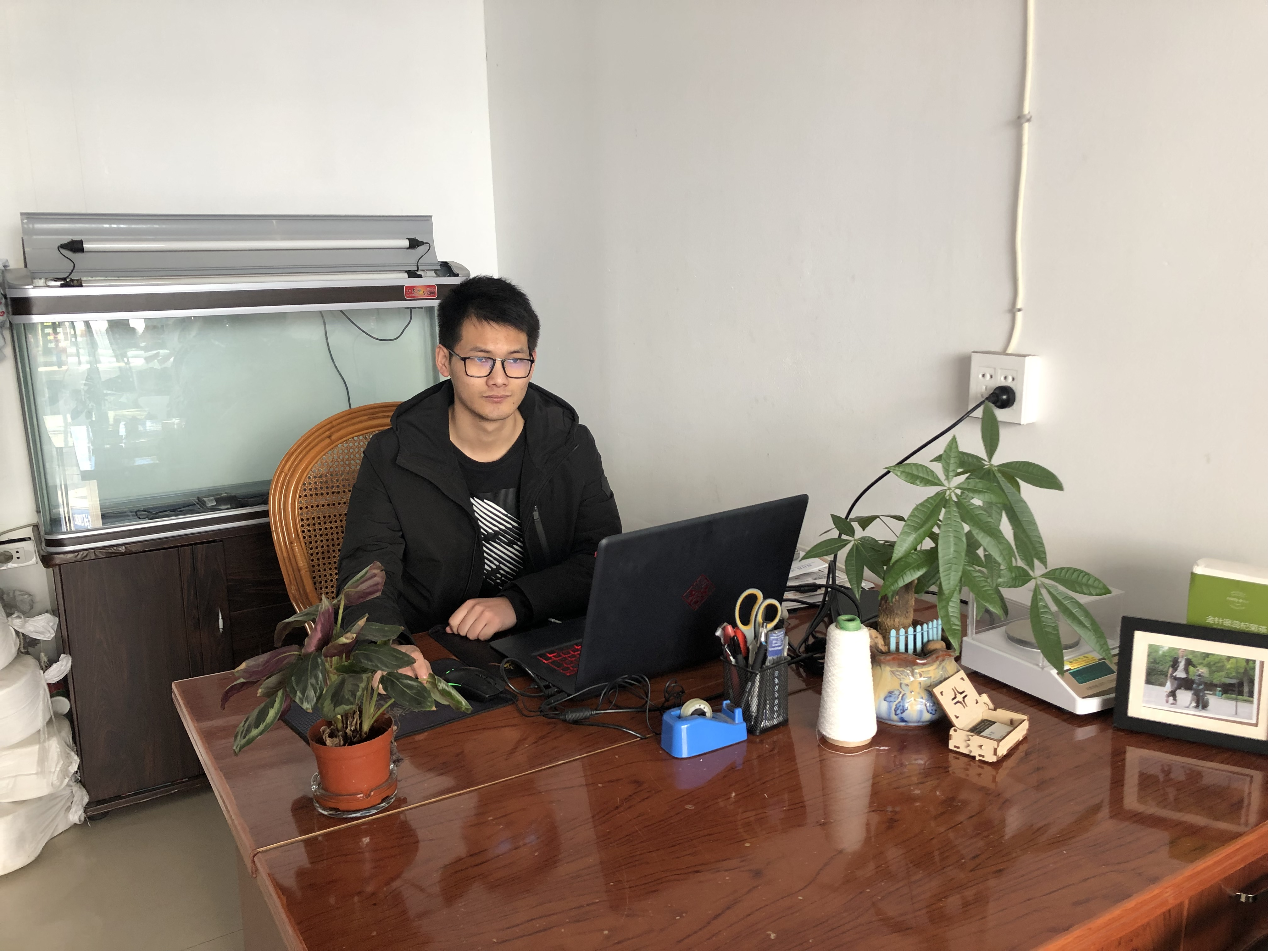 潘越军,2016届纺织工程专业毕业生。凭借在大学里所学的专业知识和实践,毕业后通过对纺织市场行情了解后,从事纺织纱线原料贸易工作,并独自创办了杭州节远纺织品贸易有限公司,主要生产和销售花式纱线,目前准备扩大生产能力,拓展外贸国际市场。
