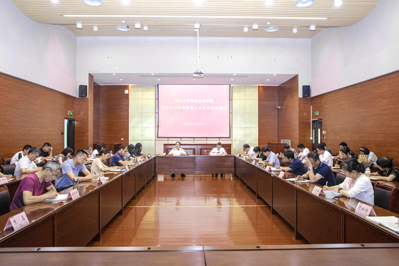 6月27日下午,学院在图书馆828会议中心召开传达学习省第十五次党代会精神大会。院党委书记梁瑜传达省第十五次党代会精神,院长沈红卫主持会议。院党政班子成员、全体中层干部参加会议。