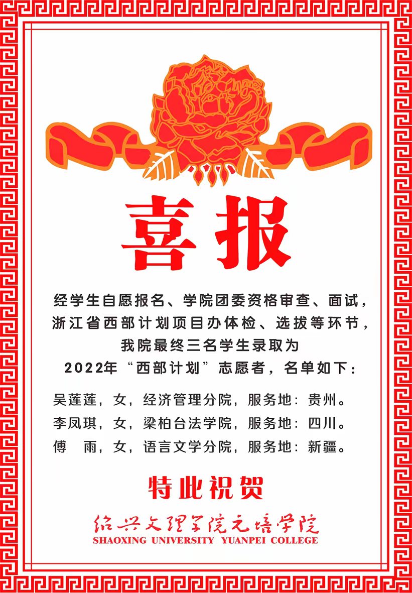 我院三名学生录取为2022年“西部计划”志愿者