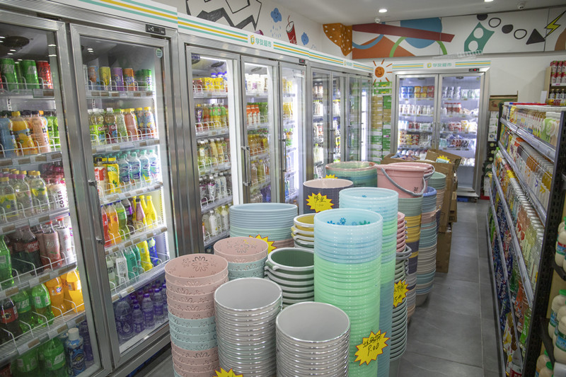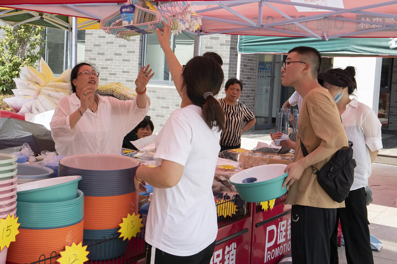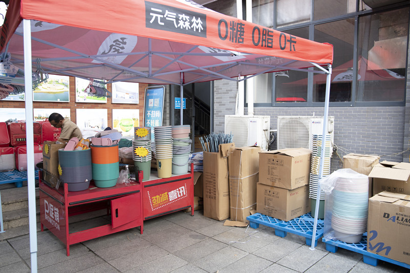 来到超市门口,床上四件套、凉席、脸盆、扫帚、垃圾铲等生活用品按类堆积在南区蓝天超市的货架上下,囤积的洗衣液、抽纸整整齐齐被摆放在超市中,“我们提前采买了学生可能会用到的商品,以便新生补齐所需的生活用品。”超市管理员说。