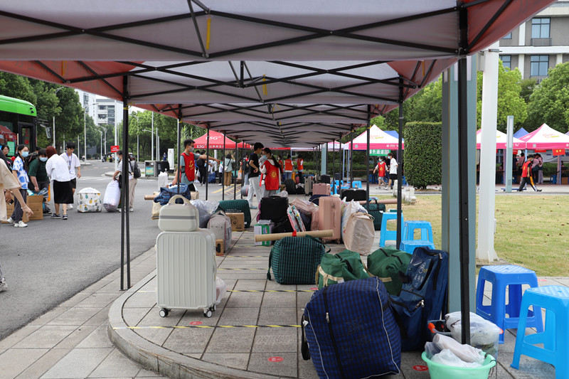 “今年在路线设计、行李寄存等方面花了很多心思,尤其是行李寄存处,为了防止雨天新生的行李沾水,我们思考再三,花了两天两夜,设计了一个‘敞篷’的行李寄存柜。过程虽然很辛苦,但只要方便学生,再累都值得。”贺司淇说。
