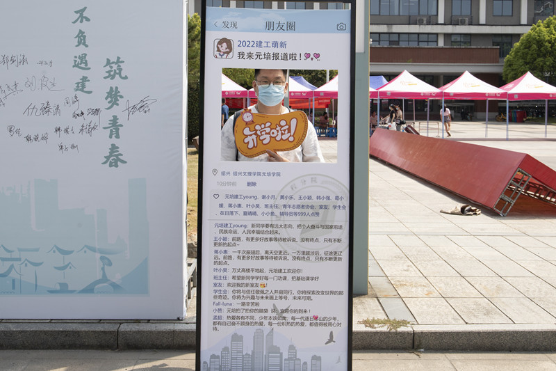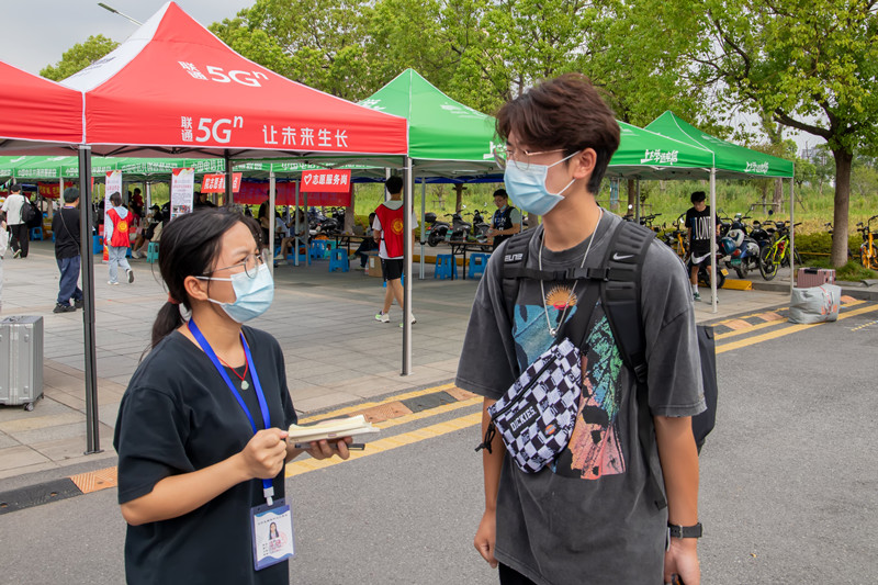 迎新花样多,共筑初印象。为迎接新生的到来,各分院纷纷开启“花样迎新”模式,一个个别出心裁的小创意,让新生们刚踏入校门就感受到了浓浓的家的温暖。“一二三,茄子!”在语言文学分院迎新展板前,新生们纷纷合影,留下初入元培的独特印记;医药与健康分院准备了以“抗疫”为主题的环保袋;梁柏台法学院为新生提供免费的矿泉水以及装有口罩和温度计的防疫物资;经济管理分院的学长学姐们自发组织“志愿队”,为新生们提供免费冷饮;纺织服装与艺术设计分院精心设计的“循梦而行的新生”宣传牌更是抓人眼球,吸引新生驻足合影;建筑工程分院的新生们在签名墙上署名,与“朋友圈”立牌合影留念。