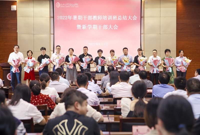 在全国第38个教师节来临之际,9月7日下午,学院在图书馆828会议中心召开2022年暑期干部教师读书班总结大会暨新学期干部大会,贯彻落实省第十五次党代会精神,传达学习学校暑期干部读书会和开学干部会议精神,全面总结上半年学院工作,研究部署下半年重点工作。院党委书记梁瑜讲话,院长沈红卫主持大会,院党政班子成员、全体主管级以上干部、任教满30年教师、教职工代表出席大会。
