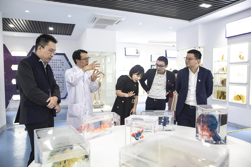 与会人员参观“共享书屋”、师德工作室、人体生命科学馆