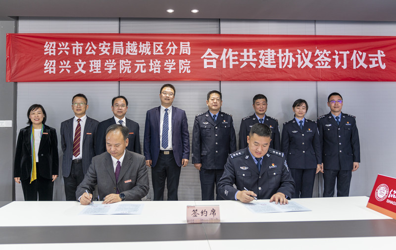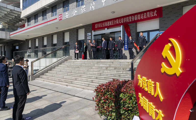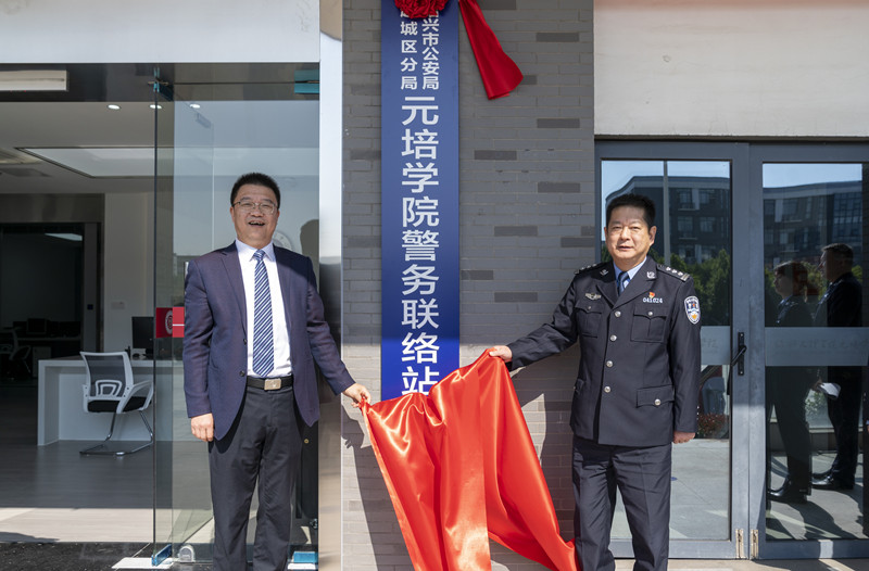 仪式上,陈均土与胡旭东共同为“绍兴市公安局越城区分局元培学院警务联络站”揭牌。