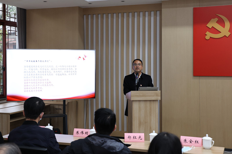 仪式结束后,双方共同开展“弘扬伟大建党精神、赓续红色血脉,开创校地合作新局面”主题党日活动。朱全红作《弘扬伟大建党精神、推进中国式现代化——学习贯彻党的二十大精神》宣讲,并开展党的二十大知识互动竞赛。双方共同参观了中共绍兴历史展陈和柯桥区新未庄初心使命馆。
