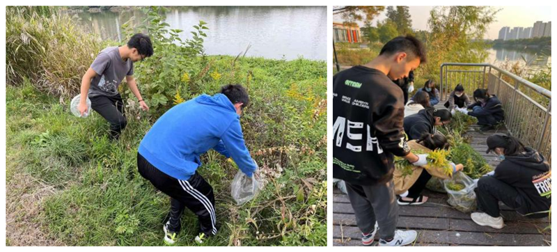 作为外来侵入物种,加拿大一枝黄花引种后易生成杂草,并且是恶性杂草,它根状茎发达,繁殖力极强,传播速度快。国贸2201班孙星宇组织26人清除团队,利用多个周末,对校园内的加拿大一枝黄花进行反复清除,成效明显。大家分片包干,齐头并进,相互比拼,现场不时响起“注意脚下”、“小心划伤”、“我们一起拔”这样贴心而温暖的话语。