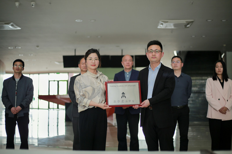 教育部中华优秀传统文化传承基地(书法)副主任陈文龙为学院授予“兰亭书法学堂”铭牌