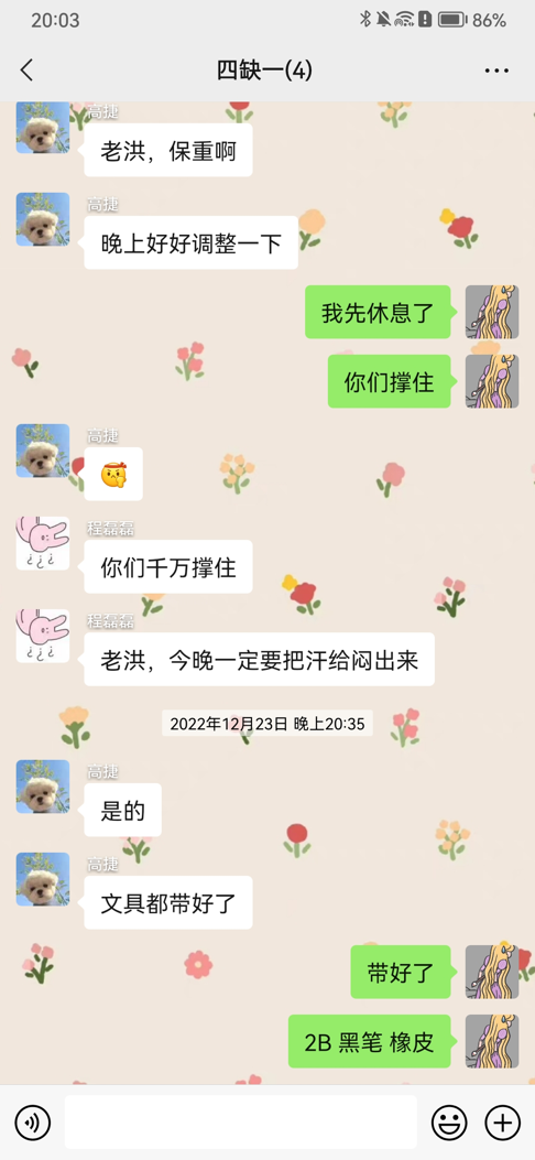 “考研前一天,我发现自己阳了,手边没有药,那个时候特别害怕,特别惶恐,是班主任联系同学帮我调药,辅导员帮我安排隔离间”洪叶回忆道,“在感染新冠的那一刻,我觉得自己非常不幸,但又觉得自己是非常幸运的,因为我身边有老师、父母、室友、同学、朋友,他们都在帮助我。”考研路上有很多不期而遇的美好,考研的路上也并非孤身一人。