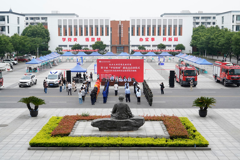 5月19日下午,学院在元培广场举行第十届平安校园建设月启动仪式暨2023年突发事件应急处置联合演练。学院党委副书记石旭明,绍兴市公安局警务装备服务中心政委、学院警务站警务专员张幼良,越城区公安分局大队长徐佳宁,学院警务站民警、阿屈工作室负责人屈伟军,东浦派出所副所长赵猛爽,越城区消防救援大队北海特勤站高级消防长赵广锦以及学院相关职能部门负责人、各二级分院分管安全工作负责人、越城区巡特警大队民警、越青雁讲师团成员、越城区消防救援大队作战员、学生义警、学院保安、义务消防队等出席仪式并现场进行了观摩学习。启动仪式由保卫处负责人主持。