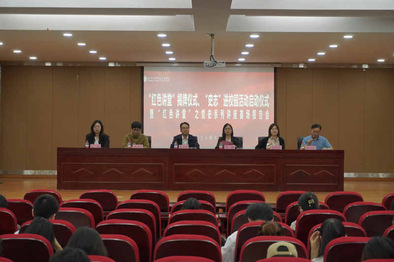 5月24日,学院“红色讲堂”揭牌仪式、“史志”进校园活动启动仪式暨“红色讲堂”之党史系列讲座首场报告会在红色学府举行。绍兴市委党史研究室主任朱全红、学院副院长李黎以及市委党史研究室、马克思主义分院相关负责人、师生代表参加活动。