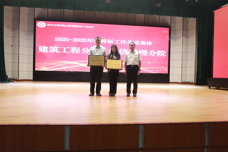 会上,学院副院长李黎宣读《绍兴文理学院元培学院关于表彰2020-2022年度科研标兵和科研工作先进集体的决定》。沈红卫、梁瑜分别为2020-2022年度科研标兵、科研工作先进集体颁发证书和授牌。科研标兵代表绍兴文化产业研究院院长应锋老师、科研工作先进集体代表建筑工程分院李明永老师分享科研团队和部门科研工作的方式方法及科研心得感悟。学校沈润溥教授作“科研创新的实践与思考”学术报告。