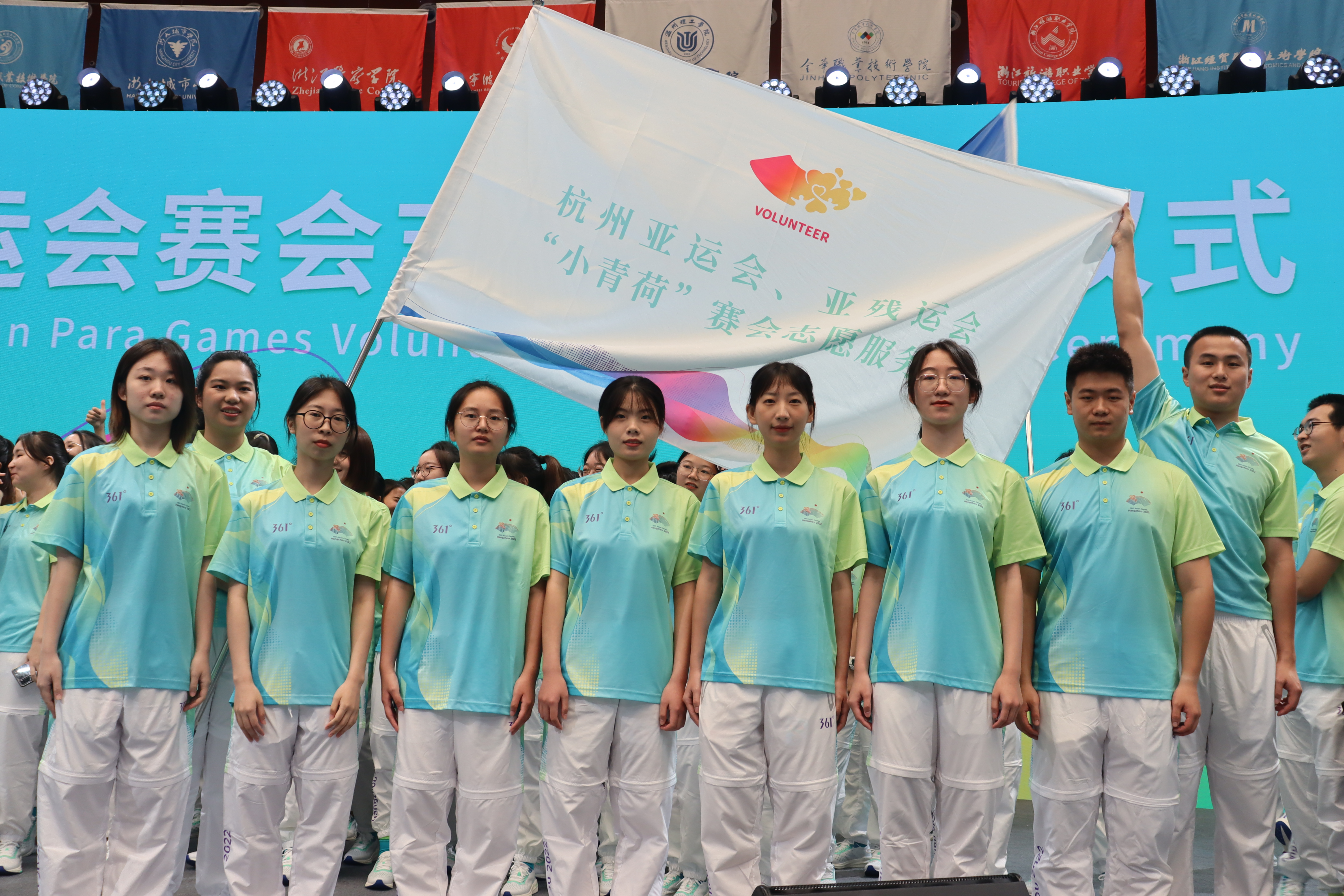 据悉,本次出征仪式表明杭州亚运会、亚残运会志愿服务工作也全面转向决战冲刺赛时志愿服务阶段。学院57名亚运会志愿者用自身的努力诠释着“让生命温暖生命,让力量激发力量”。激情亚运,活力绍兴,全力以赴。活动结束后,“小青荷”们一起合影留念,大声喊出“卓越小青荷,全力助亚运”的口号,为杭州亚运会做好最后的准备工作。