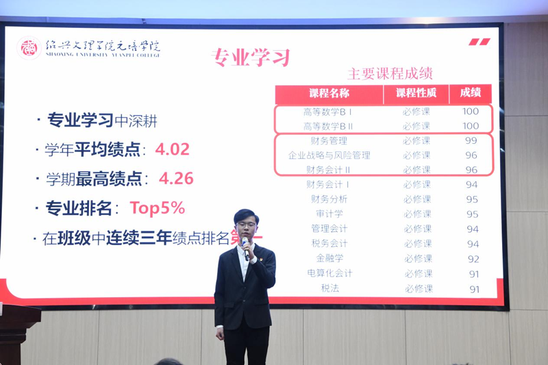 本次评审展示会共有来自7个分院的13位优秀学生参与评选,每位学生用5分钟的时间从思想素质、学习成绩、学术科研能力、创新能力、社会实践、综合素质等方面对个人在校期间的表现进行全面汇报展示。他们中有“钻坚研微,永不言弃”投身于产学研转化、在创新创业大赛中屡获佳绩的竞赛达人,有“传承红色基因,弘扬法治精神”的“非典型多面体”法学青年,有“服务意识,责任于心”的安宁疗护队队长,有“勤学善思,励志向上”综测成绩达97.87分的乐团副团长……展示会上,每位候选人自信大方,滔滔不绝,全面展现元培学子奋勇争先、全面发展、追求卓越的精神。