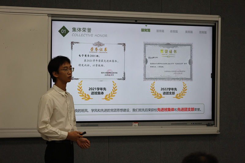 展示会上,入围的20个班级通过汇报集中展示班级简介、五育特色、班级风采、活动总结等各方面,讲述班级成员凝心聚力、拼搏奋进的青春故事,多角度、多形式展现班级凝聚力和特色风貌。经最终评选,护理学2111班等10个班级荣获“五育”先进班集体称号,并授予“蔡元培”班称号,工程管理2221班等10个班级荣获“五育”先进班集体(入围奖)称号。来自医药与健康分院的詹珍萍同学表示:“这次‘五育’先进班集体评比,让我看到了优秀班集体的独特魅力。大家在优秀班集体的感染和推动下一起前行,相互鼓励,学习氛围浓厚。”