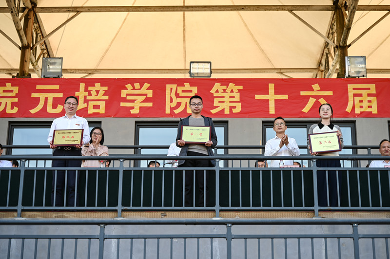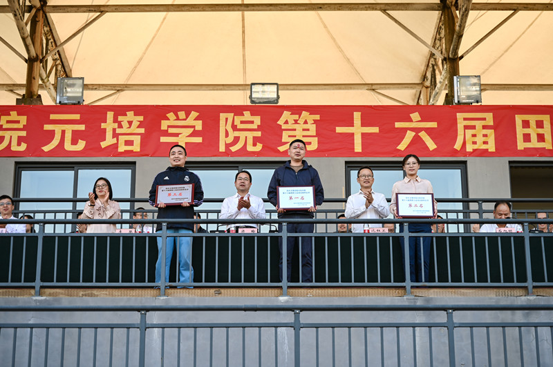 梁瑜致闭幕词,他指出,一年一度的运动会是全院的体育盛事,是学院推进素质教育与校园文化的重要载体,更是一场体育精神和元培文化完美融合的盛会,展现了元培人顽强拼搏的奋斗精神、同心协力的团结精神和自信自强的进取精神。希望全体同学能将本届运动会上呈现出的良好精神面貌延续到学习生活中来,做一名健康阳光,向上向善的活力学子;希望全体运动员再接再厉,在新征程上再创佳绩;希望全体师生脚踏实地真抓实干,接续奋斗,努力开拓新境界。