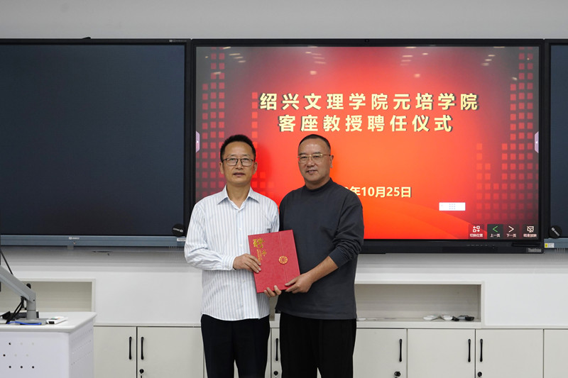 10月25日下午,金德隆文化创意园董事长丁海土受聘为我院客座教授,学院院长沈红卫为其颁发聘书。绍兴市文化产业促进会副会长兼秘书长、绍兴市文化产业研究院院长应锋,金德隆文化创意园党支部副书记、招商部经理华立及纺织服装与艺术设计分院师生参加仪式。