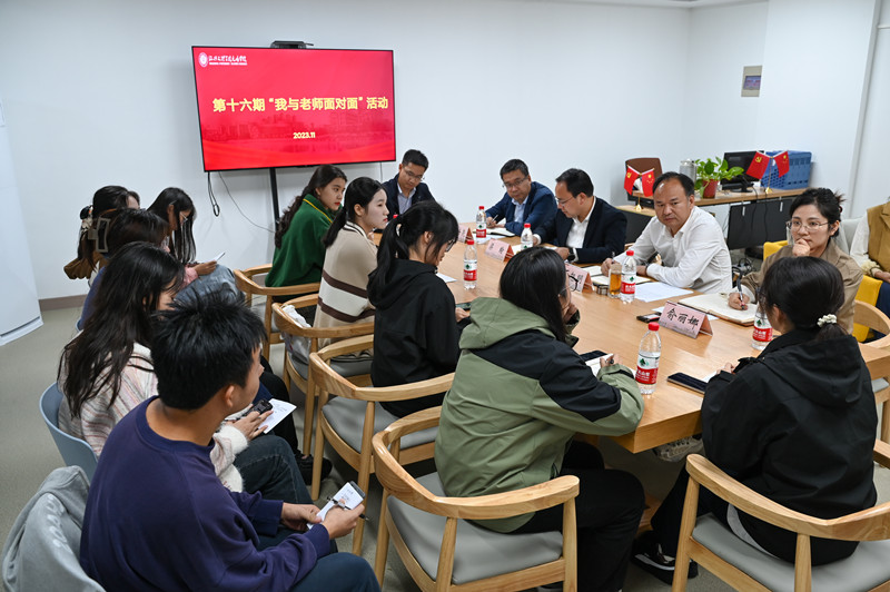 11月9日晚,学院第十六期“我与老师面对面”活动在学院“一站式”学生社区服务中心举行。学院党委书记梁瑜出席会议,相关职能部门负责人、2023级学生代表参加活动,党委副书记石旭明主持活动。