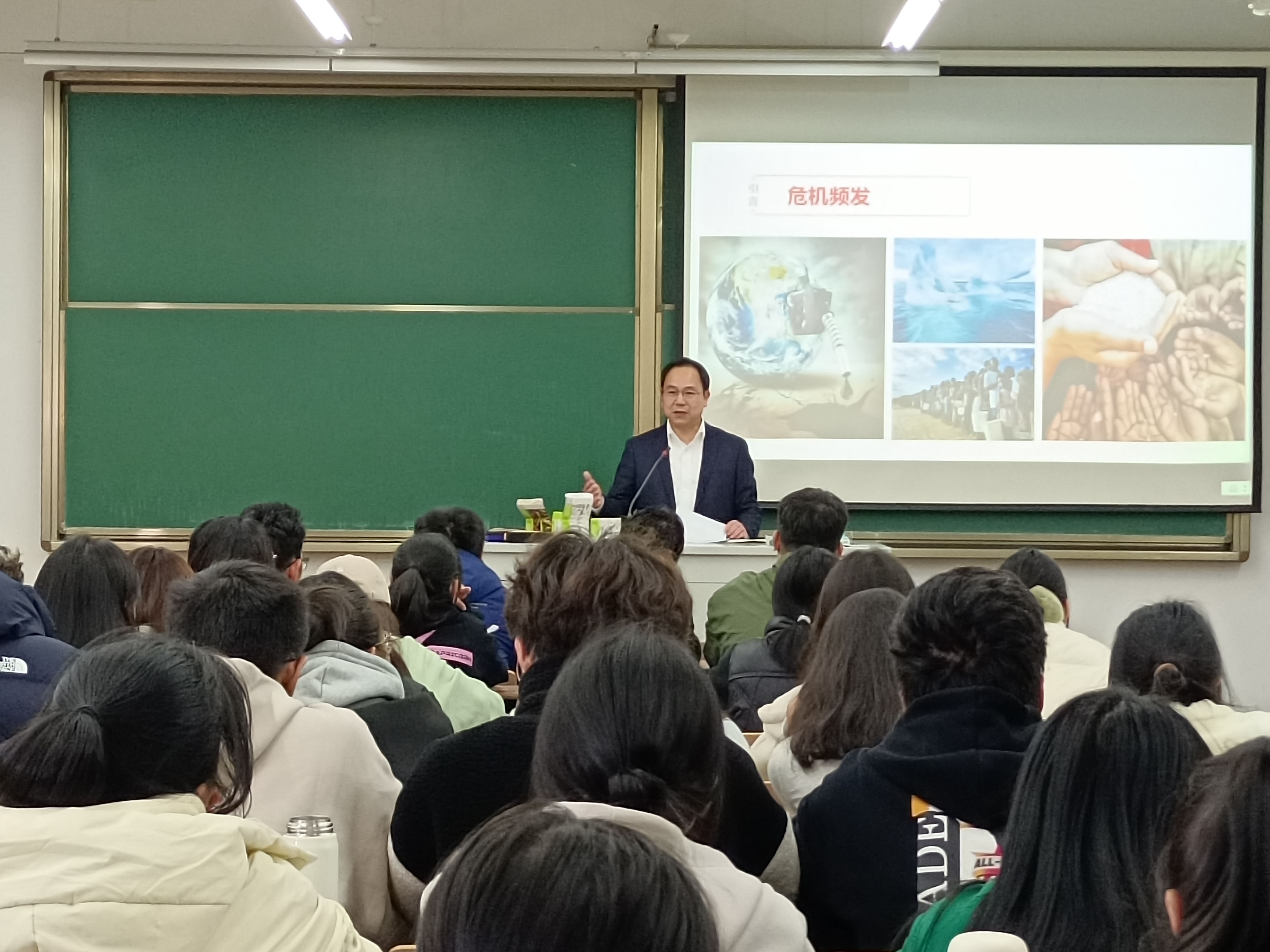 梁瑜从“世界百年未有之大变局”切入,围绕地缘政治局势紧张、世界经济复苏乏力、全球治理体系受到冲击、粮食和能源等危机叠加四个方面深刻分析当今世界面临的危机,深入阐述我国如何致力于维护大国关系,坚持不懈探索中美相处之道,坚持高水平发展中俄新时代全面战略协作伙伴关系和稳中推进中欧关系,详细讲解习近平总书记提出的全球发展倡议、全球安全倡议、全球文明倡议。他强调,同学们作为当代青年大学生,要有世界眼光、国际视野,要有家国情怀、报国之志,要有仁爱之心、精湛技能,要有踏实作风、坚强毅力,学会用世界的眼光看问题,将自己放在一个大格局当中去思考,感受现在幸福生活的来之不易。