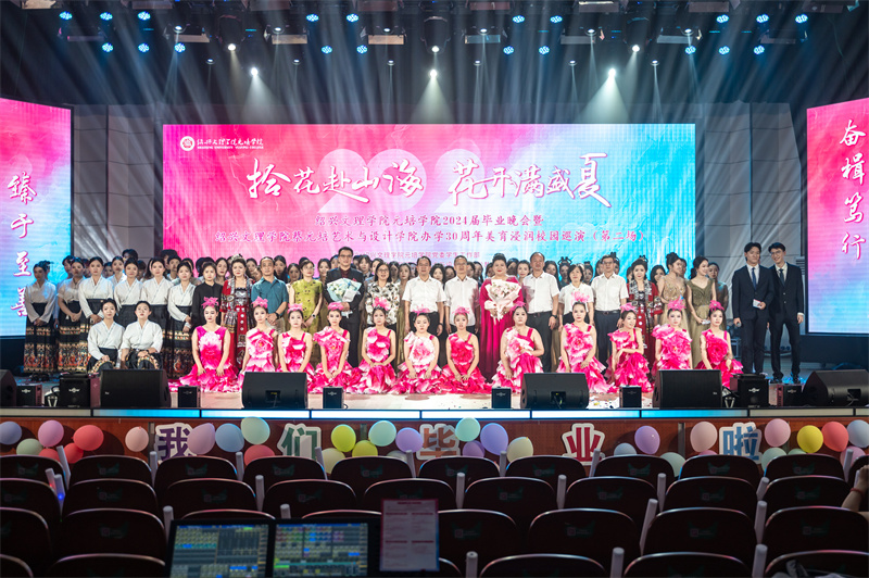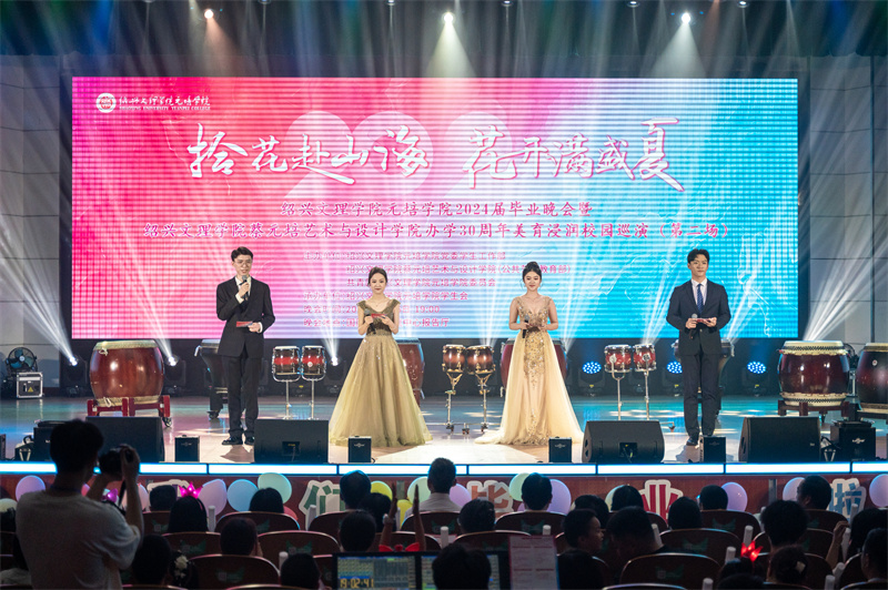 回首是满地繁花,抬头是璀璨星海。6月16日晚,学院在国际文化交流中心报告厅举行2024届毕业晚会暨绍兴文理学院蔡元培艺术与设计学院办学30周年美育浸润校园巡演(第二场)活动。学院党政班子成员、相关职能部门和分院负责人,辅导员、班主任等教职工代表,在校毕业生代表出席晚会。本场晚会以主会场+“云直播”相结合的方式进行。“云上”的老师、同学及家长也共同见证了这场盛会。