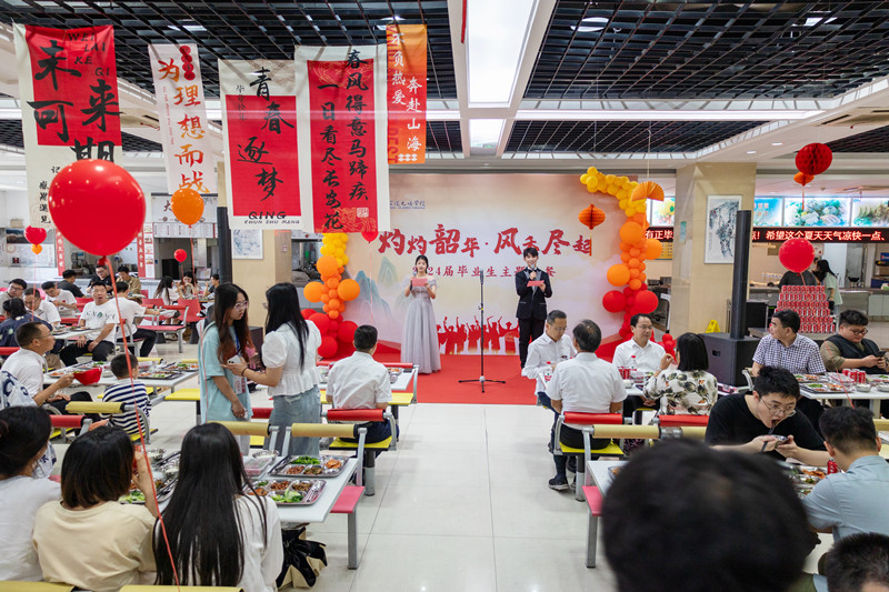 当天中午,学院还在南区群贤楼餐厅举办“灼灼韶华·风禾尽起”主题毕业会餐,学院领导、老师,学生与家长齐聚一堂,共同庆祝2024届毕业生完成学业,顺利毕业,温情欢送毕业生扬帆远航、逐梦远行。进餐过程中,学院院长沈红卫致辞,为即将远行的毕业生送上真挚祝福和良好祝愿。现场,学院还为当天过生日的毕业生举办了集体生日会。
