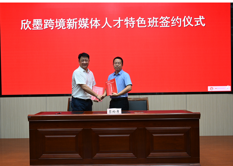 仪式上,周思红和黄狄来共同为新媒体人才特色班揭牌,校企双方签订新媒体人才特色班合作协议,欣墨集团向学院捐赠十万元奖学金,特色班带队教师作人才培养方案介绍,企业导师和特色班学员代表发言。