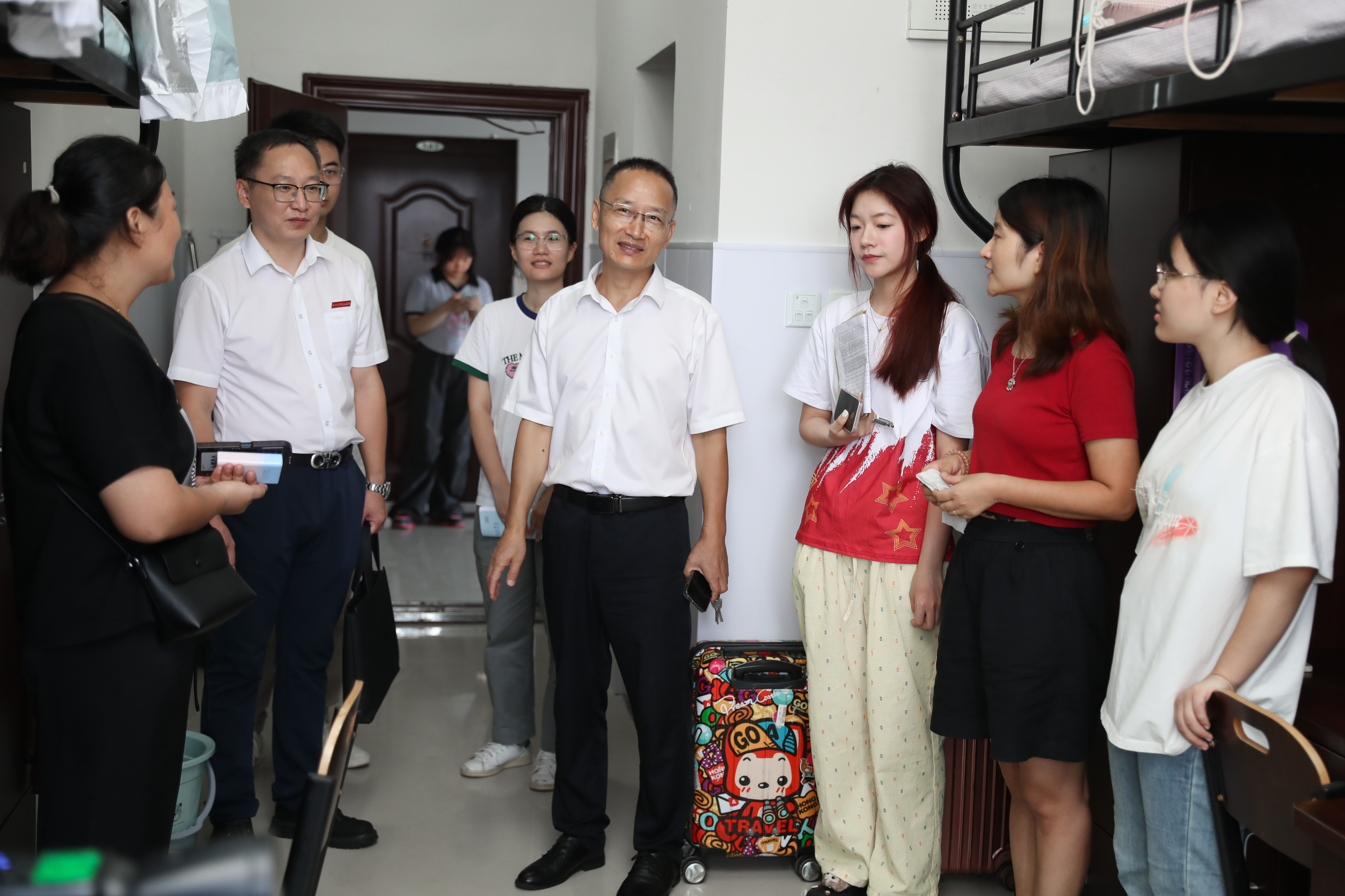 临近傍晚,梁瑜、沈红卫在办公室、学工部和相关分院负责人陪同下,专程赴学生公寓走访看望2024级新生。“同学,你来自哪个省份?”“今天是谁陪你一起过来的?”“这里的气候、环境还适应吗?”交流过程中,梁瑜、沈红卫详细了解新生们的来校路途、专业方向以及对未来的规划等,与新生及家长诚恳交流,悉心叮嘱同学们踏入新校园,要及时适应新环境,尽快融入新集体,学会相互理解,彼此包容,携手并进,共同成长;深情激励同学们步入人生新阶段,要脚踏实地,志存高远,牢记初心,学好知识,在新的青春赛道上奋力奔跑,为国家、为社会贡献自己的青春力量。