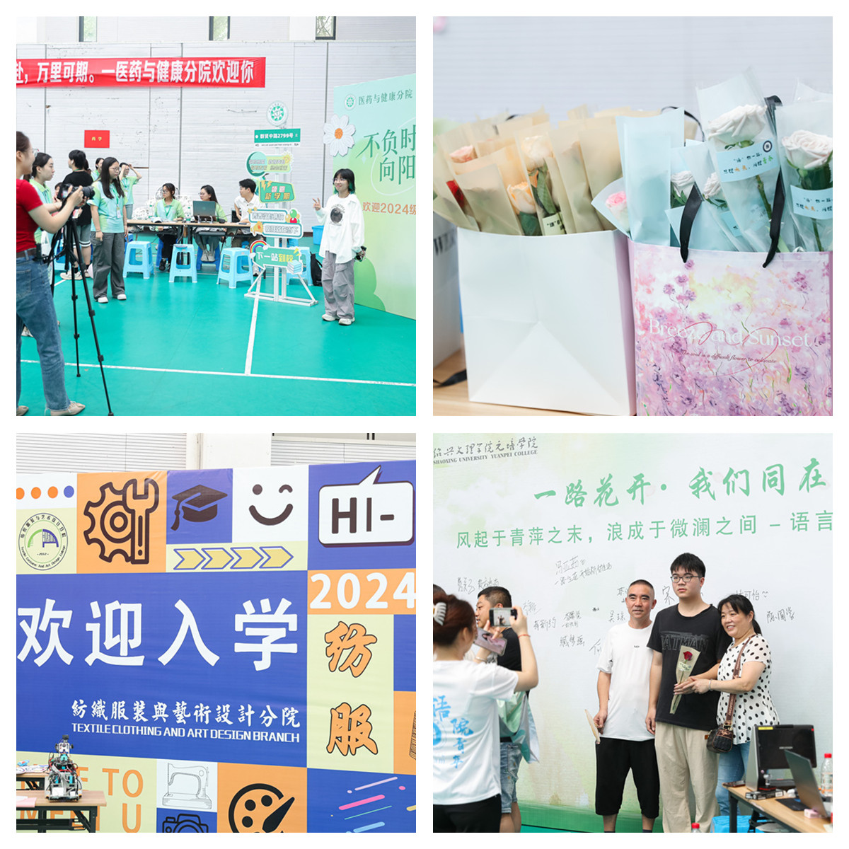 在师生活动中心,工作人员全情投入服务新生报到,为新生耐心讲解报到流程,帮助新生有条不紊地完成各项报到程序。各分院为新生精心准备了温馨浪漫、实用好看的专属大礼包,还有丰富多彩的专属活动,用真心真情为新生们打造温暖的“新家”。迎新现场还设置了绿色通道等一站式服务,助力新生入学无忧。一群群师生志愿者奔前忙后,温暖助力新生报到,全程服务一路相随,为这次跨越山海的赴约保驾护航。